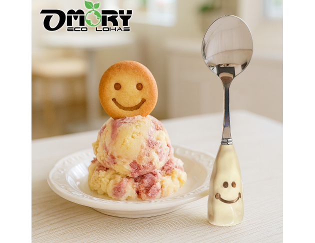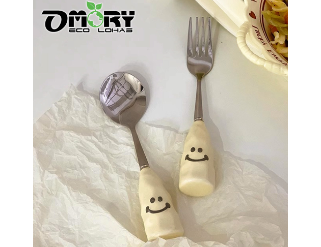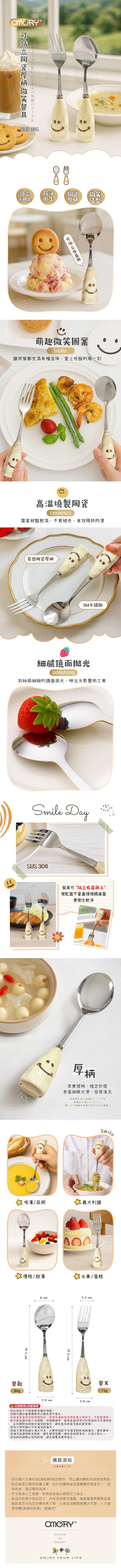 品名:【OMORY】304可站立陶瓷厚柄微笑餐具