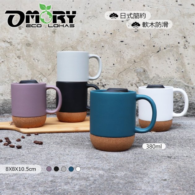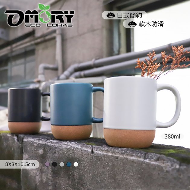 【OMORY】日式防滑軟木陶瓷馬克杯/咖啡杯-380ml