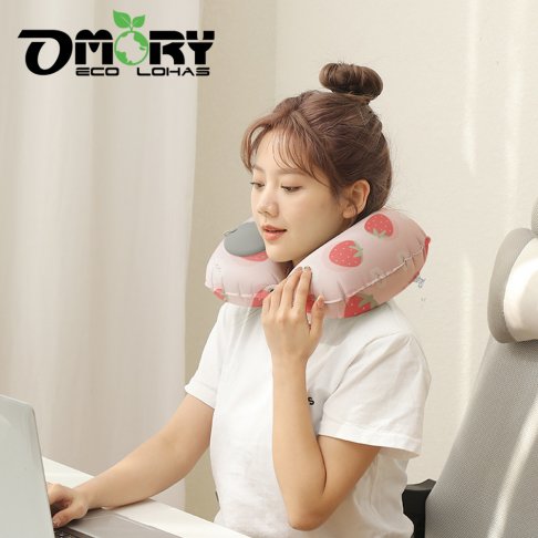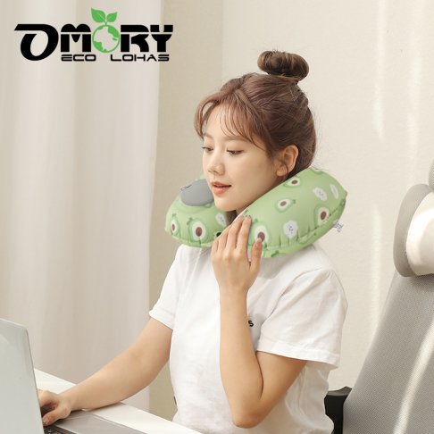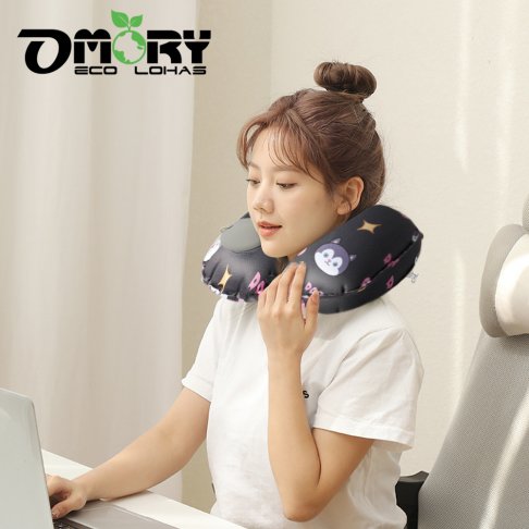 【OMORY】印花涼感按壓充氣頸枕(附帆布收納袋)