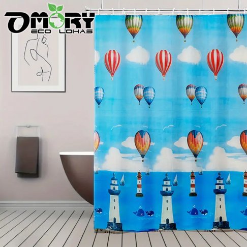 品名:【OMORY】簡約PEVA防水浴簾180x180cm-熱氣球