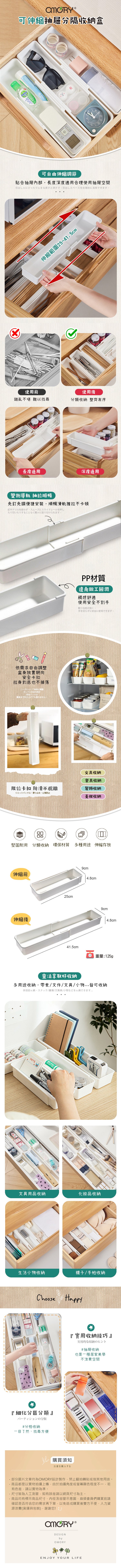 品名:【OMORY】可伸縮抽屜分隔收納盒