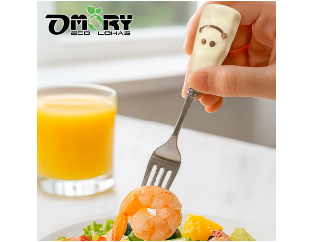 品名:【OMORY】304可站立陶瓷厚柄微笑餐具