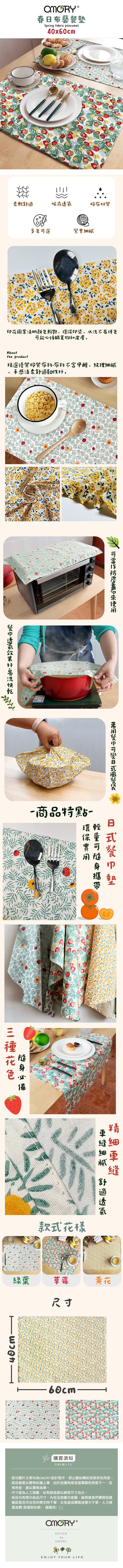 品名:【OMORY】春日布藝餐墊40x60cm