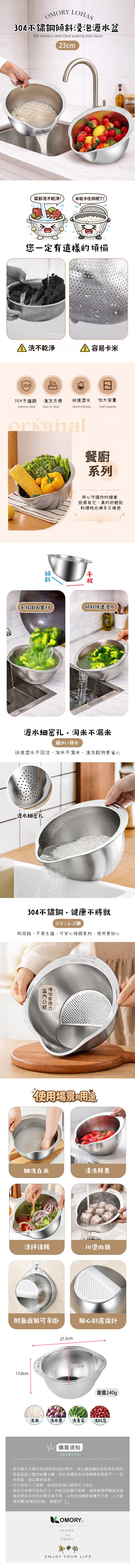 品名:【OMORY】304不鏽鋼傾斜浸泡瀝水盆23cm