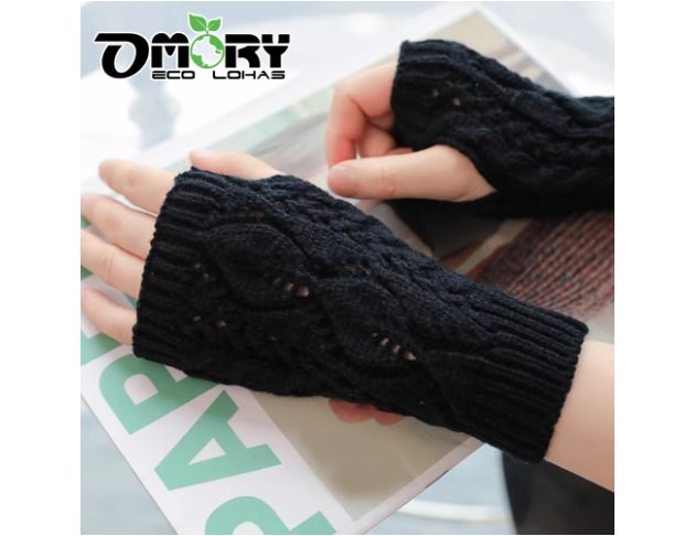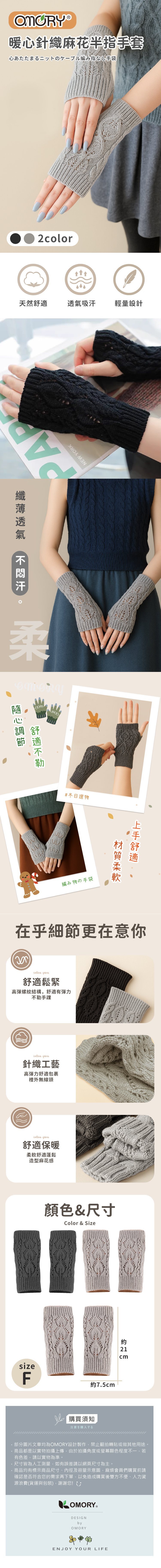 品名:【OMORY】暖心針織麻花半指手套