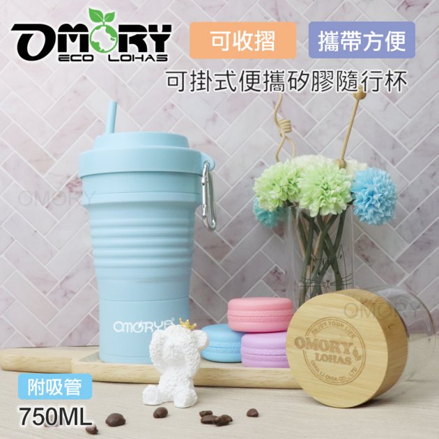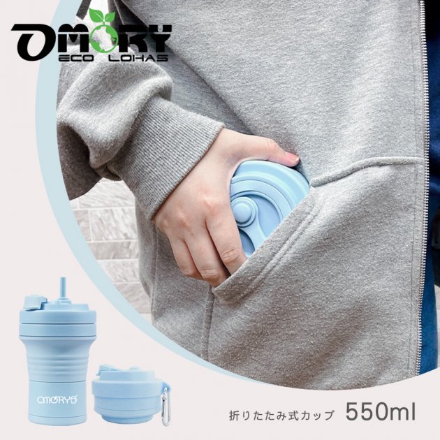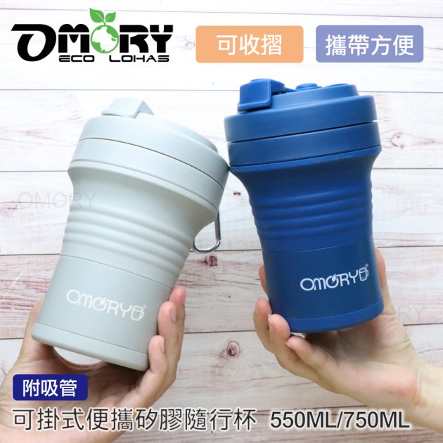 【OMORY】可掛式便攜矽膠摺疊隨行杯(附吸管)550ML